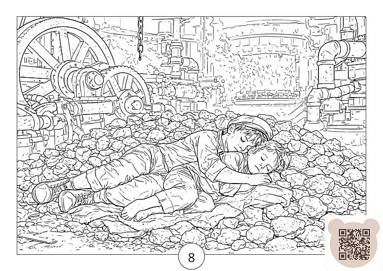 Before you is not merely a Christmas coloring page, but a true artistic immersion into the Victorian age. This illustration for the Christmas true-tale about a little boy named Finn is created in the style of classic book engraving. It is deliberately free of familiar “cartoonish” softness, so that a child may feel the depth of the story—working with shadow and light, soot and glow, in the old city by the hearth-lit streets.