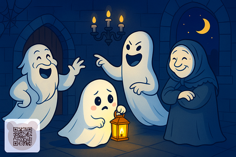 У старезному замку, де двері самі собою рипіли, а павуки плели хитрі мотузки поперек коридорів, жив маленький привид. Його звали Шуршик.