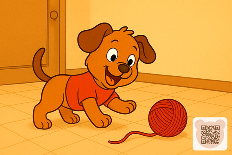 Виявилося, що клубочок котив щеня Тобік. Він сміявся й грався з ним по підлозі.