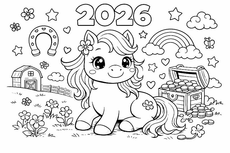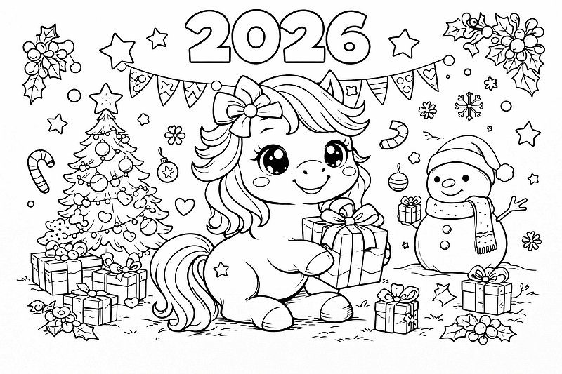 Новорічні розмальовки 2026 роздрукувати: коники та інші — ідеальне рішення для святкових занять із дітьми. У добірці представлені розмальовки з кониками — символом року 2026, а також зимові картинки з тваринами, новорічними прикрасами та казковими героями. Усі новорічні розмальовки можна роздрукувати безкоштовно у форматі A4 та використовувати вдома, у дитячому садку чи школі. Такі дитячі розмальовки розвивають уяву, дрібну моторику та допомагають створити атмосферу Нового року 2026.