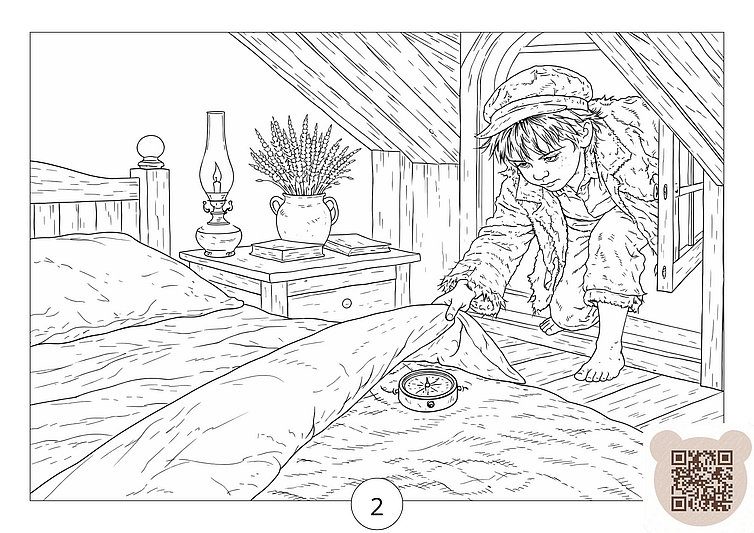 Маленька порада: почни з найяскравішого місця на картинці — з вогника в ліхтарі або сяйва компаса. Використовуй золоті та жовті олівці, щоб «розігнати» лондонський туман. Нехай твоя картинка оживе й зігріє Фінна цієї холодної ночі!