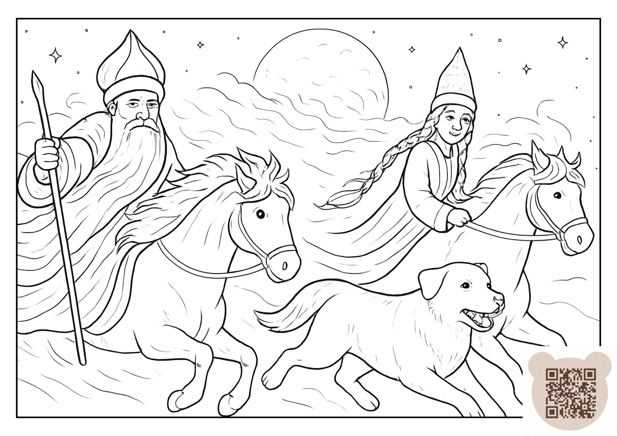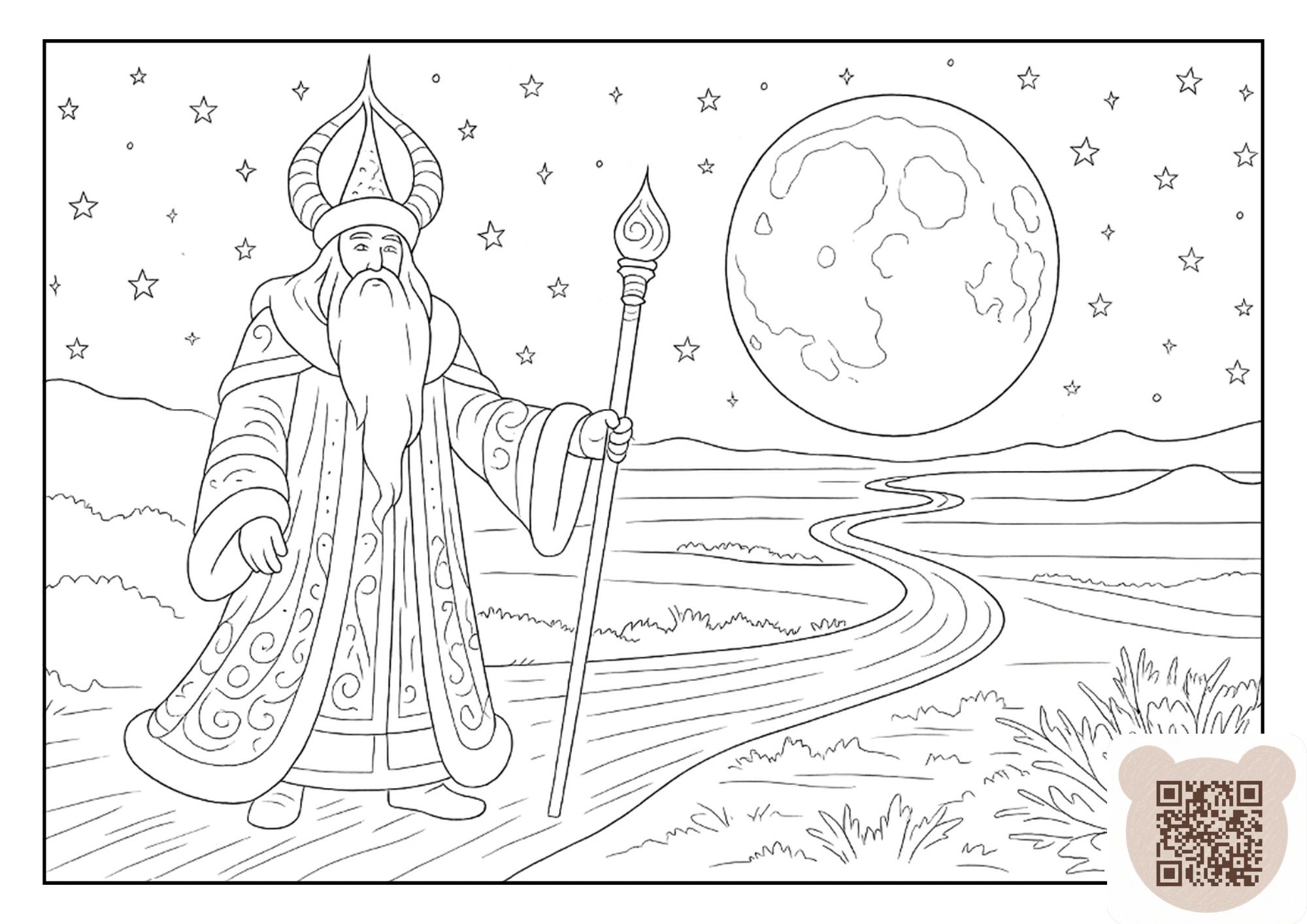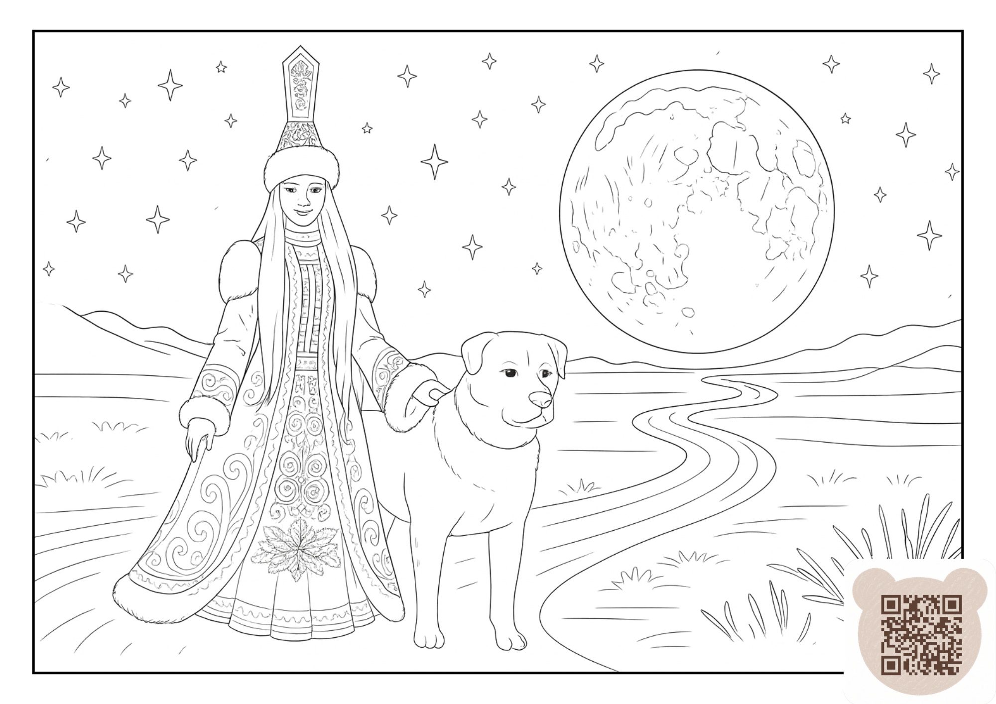 Добро пожаловать в зимнюю сказку степи! Эта раскраска про Аяз Ата для детей создана по мотивам истории о добром аксакале зимы, сияющей Кар Кыз и храбром Төбете. Здесь каждый ребёнок может собственными руками раскрасить степную зиму — с пушистым снегом, звёздным небом и волшебством, которое приходит незаметно.