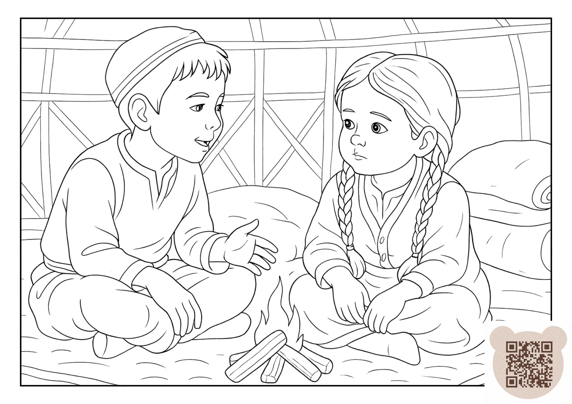 Раскраска про Аяз Ата, Кар Кыз и Тобета