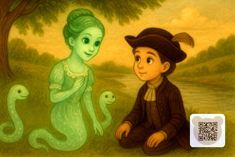 Однажды, в тёплый летний день, Ансельм сел под высоким каштаном у самой реки. Вдруг он услышал странный звон — лёгкий и нежный, словно кто-то звенел хрустальными колокольчиками.