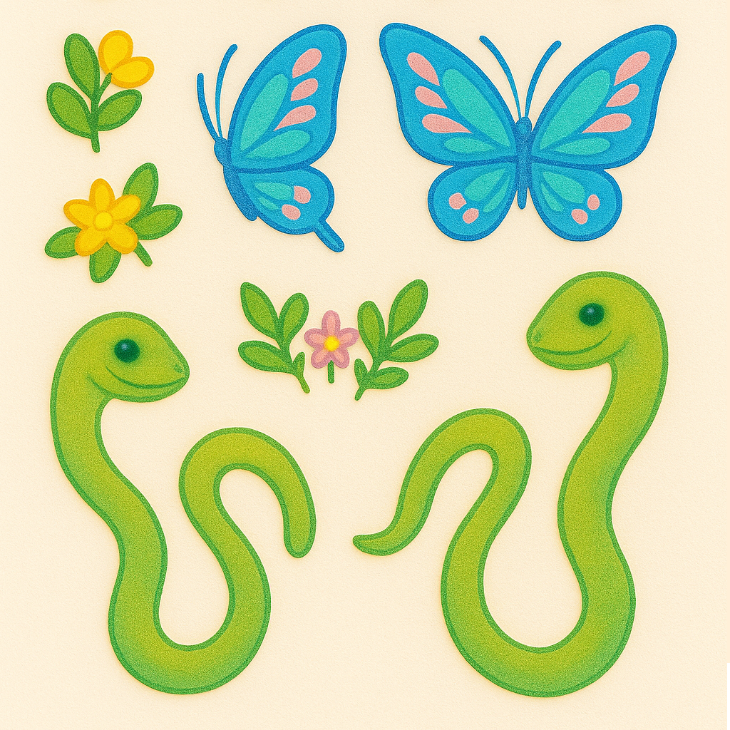 Ансельм наклонился и заглянул в траву. Там, среди зелёных стебельков, извивались три прозрачные змейки. Их чешуйки переливались, как стекло на солнце, а в глазках сияло золотое свечение.