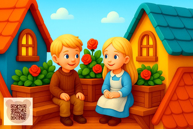 У великому місті, де так багато будинків і людей, що не кожному вдається відгородити собі бодай маленьке місце для садочка, і де більшості мешканців доводиться задовольнятися кімнатними квітами в горщиках, — жили двоє бідних дітей, але в них був садочок, більший за квітковий горщик. Вони не були братом і сестрою, але часто грали разом і були не менш ніж найкращими друзями. Їхні батьки жили в мансардах сусідніх будинків. Дахи майже сходилися, а під виступами дахів тягнувся водостічний жолоб, що проходив якраз під віконцем кожної мансарди. Тож варто було лише ступити з котрогось віконця на жолоб — і можна було опинитися біля вікна сусідів.