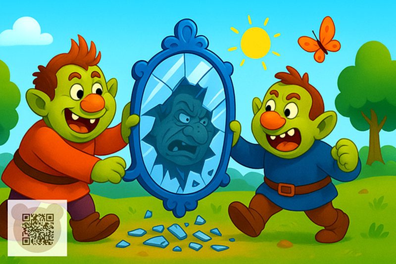Так ось, у найдавніші часи жив на світі троль, такий злий, що злішого за нього не знайти було в усьому білому світі. Якось він був у особливо доброму настрої і змайстрував чарівне дзеркало: усе добре й прекрасне воно показувало найзлішим і найпотворнішим, а найгірше ставало й зовсім неймовірно жахливим.